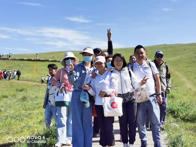 早晨7點(diǎn)鐘全體員工準時(shí)在公司樓下集合,前往輝騰錫勒草原黃花溝景區,開(kāi)始了一天的愉快旅程。